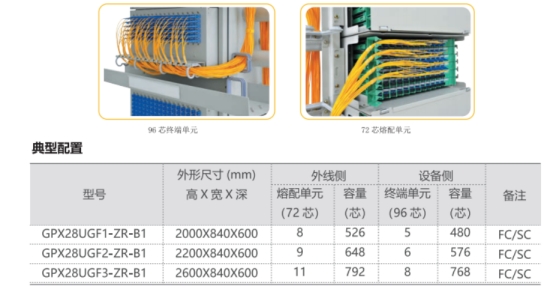 4. 设备侧96芯终端单元采用旋转结构,设有开放的布缆通道,施工灵活方便